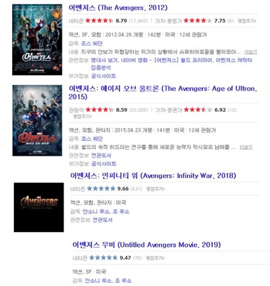 ¹Ì±¹ ±âÁØÀ¸·Î ¾îº¥Á®½º(2012 5¿ù), ¾îº¥Á®½º: ¿¡ÀÌÁö ¿Àºê ¿ïÆ®·Ð(2015³â 5¿ù), ¾îº¥Á®½º: ÀÎÇÇ´ÏÆ¼ ¿ö(2018³â 5¿ù)¿¡¼ º¸µí ÇØ´ç ½Ã¸®Áî´Â 3³â ÁÖ±â·Î °³ºÀÇÕ´Ï´Ù.